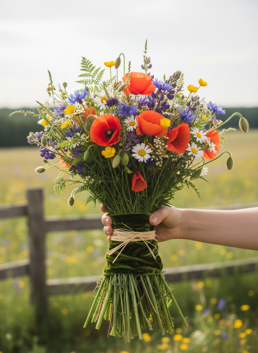 꽃 줄기를 한 손으로 잡고