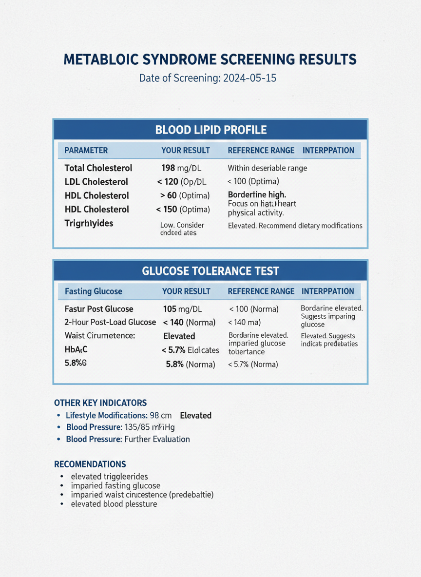 간 기능 수치(ALT/AST), 혈당 수치 등을