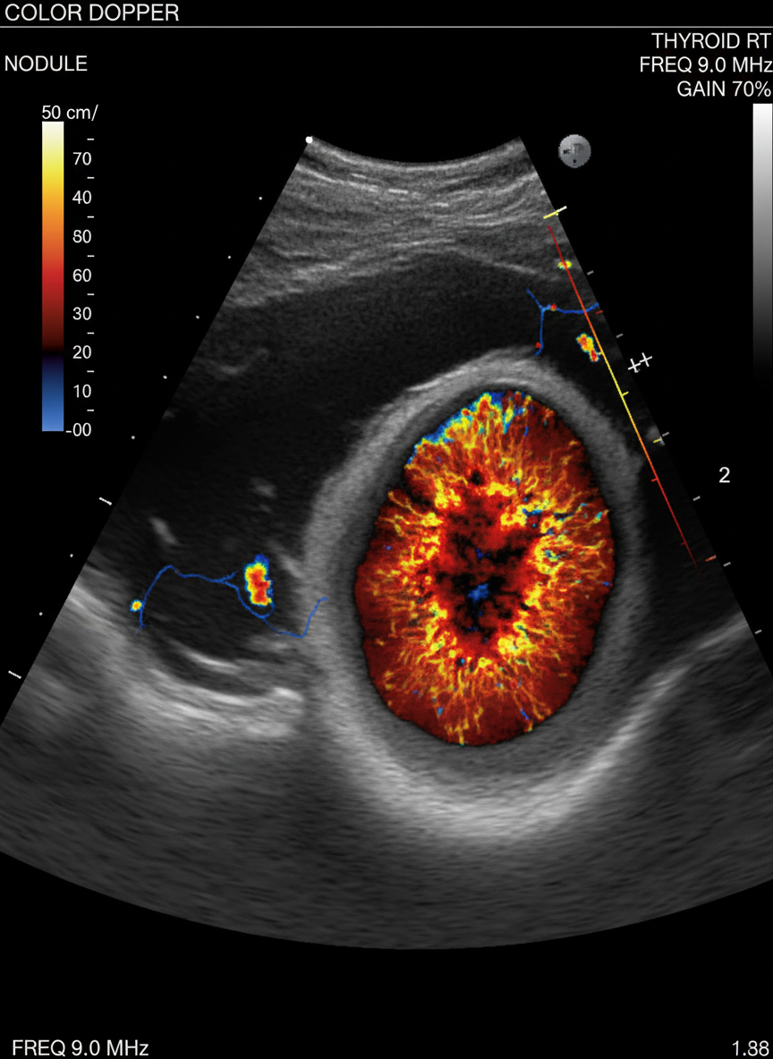 - 갑상선 초음파: 갑상선 내부의 결절 유무, 크기, 모양, 경계 등을 아주 자세히 확인할 수 있는 검사예요.비교적 간단하고 통증 없이 진행돼서 많이 사용된답니다.암이 의심되는 결절이 발견되면 다음 단계로 넘어가죠.